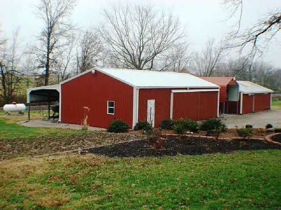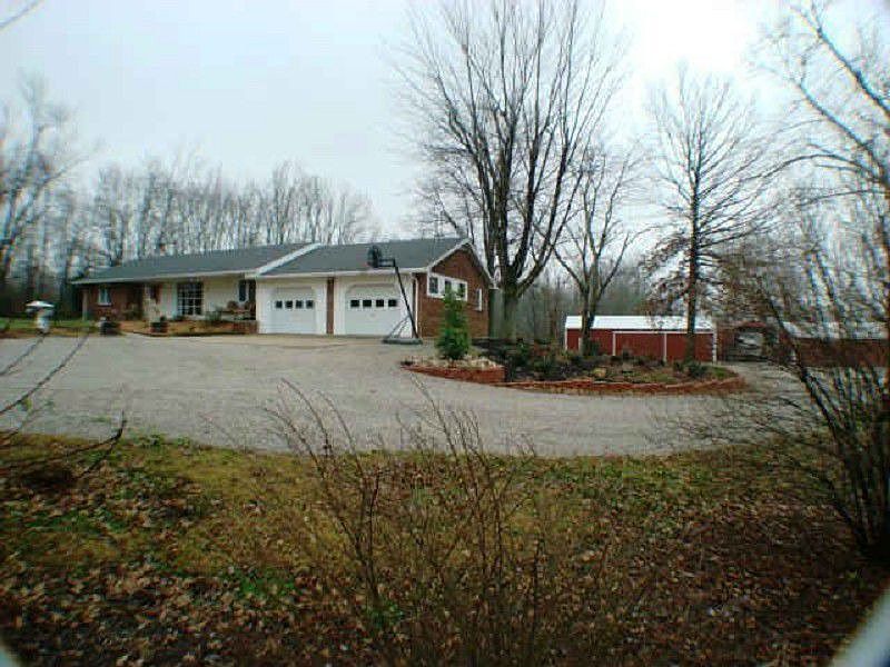 2.74 acre lot, completely remodeled Brick ranch home, with full finished basement. 4-5 bedroom home, 2.5 baths. 2 large pole barn buildings with electic and insulated, separate RV carport. Landscaping professionally designed by Charlie Stocker. Covered front porch and concrete patio in back. Updated roof and windows, aluminum siding soffit and guttering. Basement professionally waterproofed with transferable warranty through B-Dry. There is a termite transferable warranty. Recently updated custom oak kitchen cabinets and bathroom vanities. Recently new countertops and bathroom fixtures. Carpet 5 years old, recently new wood laminate and tile. updated drywall, trim, doors. Upstairs updated electic. Recently updated stomped ceilings with recess lighting and ceiling fans. 5 year old appliances included, washer and dryer also included. Excluding water softener and propane tank. Fresh paint throughout. Full finished basement with kitchen and full bath, spacious fmaily room and 3 bedrooms. There is a fire escape hatch in basement. Dining room off kitchen, spacious living room open to kitchen, great for family gatherings. Attic storage over attached 2.5 car garage. Large back family room with one wall full of windows, and there is a real wood burner. All the privacy you want. The out building have work benches, on bldg has a furnace, they are insulated and have electric. Plenty of gardening room, and enjoying the outdoors. 1 year home warranty included. This home is move in ready. Shows like a new Home!
