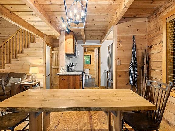 Want a successful STR Airbnb w/high appreciation, that mostly pays for itself while cared for & management w/out lifting a finger (or the $100k+ to create it)? Then WOODLAND DREAMS is for you! Private end of road unrestricted 3 Master BRs/3 BAs, log cabin, w/mountain & pasture views on a creek. 3rd year 4.9 stars. 5 min to Marina & downtown! $50K/yr. prof decorated & updated - custom vanities, wood interiors, log & leather furnishings, cathedral ceiling, exposed beams, gas/timer fireplace, loft, 2nd LR/game room, built-in bunks, fully appointed (everything included), pristine condition. Recently stained, 360-degree wraparound covered deck, garage, hot tub, outdoor FP deck, updated septic, landscaped. Daily deer, mature hardwood-trees, trails w/easy access, buried power lines, mini splits in lower level, more!