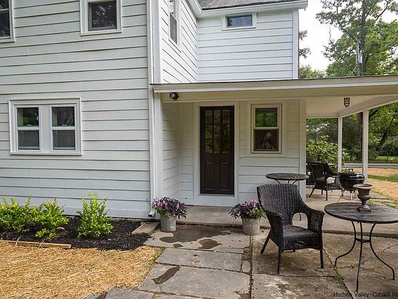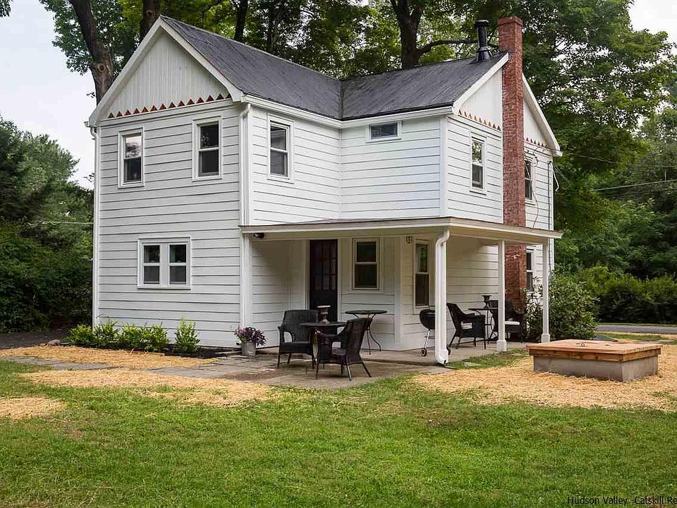 SIMPLE LIVING. Complete and extraordinary renovation of a 1940s farmhouse to an URBAN FARMHOUSE steps to Westwind Orchard, Arrowood Farm Brewery, and the organic farmstand at Hollengold Farm. Meticulously renovated by Jay Perrotta, local builder/designer. You'll delight in the original old growth pine and fir flooring, tin ceiling, original wainscotting, repurposed wall planks create kitchen/vanity counters, and original window sills providing a respectful nod to the past. All window and door trim have custom ogee profile with extended height base trim. Jay opened the layout to provide a generously-sized entrance, wide doorways, and an open upstairs landing giving this home a wonderful feeling of spaciousness. This is a quality renovation inside and out. Hardiboard exterior with architecture copper detail inspired by an historic 1800s New England manor house located in Manchester by the Sea, MA. The copper will age to a beautiful patina green. Perfectly sited on property and surrounded by large, mature trees and large open green space with plenty of room to idle away your day. Covered porch is perfect for your morning coffe or sunset cocktail. Pick up the morning paper and other household items at the convenience store across the road!
