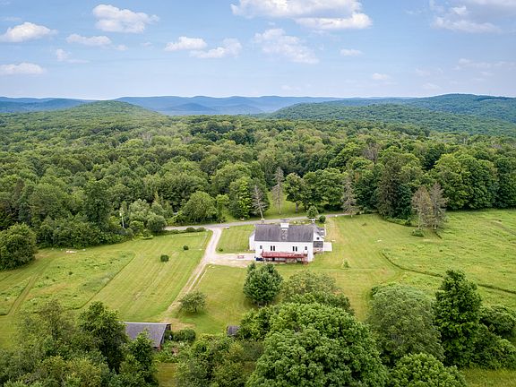 This mountain top sanctuary offers the ultimate in privacy, set at the end of a town road. The property is a mix of meadows and woods and abuts protected land. The 1800's barn was completely redone into a dramatic living space. Enter into through the massive double doors into a stone floored, 3 story entry with stairs that lead you up to the great room with its soaring ceilings and floor to ceiling stone fireplace. There are walls of windows and a large kitchen with chef's quality appliances. French doors lead out to the massive deck overlooking the yard and views. On one side is the very private Master bedroom suite with wood burning fireplace, walk in closet, office area and master bath. On the opposite end is the guest wing with three bedrooms, one full and one half bath with laundry. The lower level has a family room with fireplace, gym, workshop and garages for 4+ cars. Much of the lower level is unfinished and offers great potential. A separate barn set back from the house, has additional storage. The house is being offered on 10 acres, but there is an additional 59 available with multiple meadows as well as some woods and a large amount of road frontage, making subdivision a possibility. See MLS listing # 170214745 for the house offered on all 69 acres for $1,050,000.