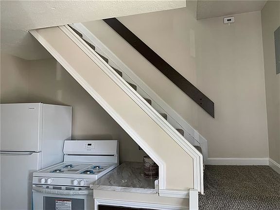 Spacious 1 bedroom unit in a 2 unit duplex. This unit has large upstairs bathroom and roomy bedroom with high ceilings. Downstairs has an open kitchen with refrigerator and stove and cabinet space. Kitchen looks out into living space with natural lighting. Utilities are not included and are separately metered from adjoining unit. No Pets permitted