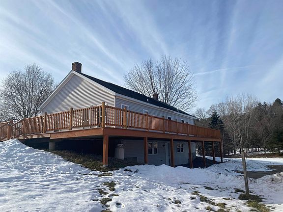 Impressive ranch style home situated in the middle of 3.2 acres. This three bedroom home offers expansion possibilities in the full walkout basement, with interior access. Many recent improvements include septic inspection, boiler service, bathroom fixtures, flooring, painting, and staining of decks. The detached 24 x 24 two car garage has overhead storage and an attached run in shed for animals. The 3.2 acres are mostly open south facing lawns, features many fruit trees, ample garden space, and privacy from this corner lot.