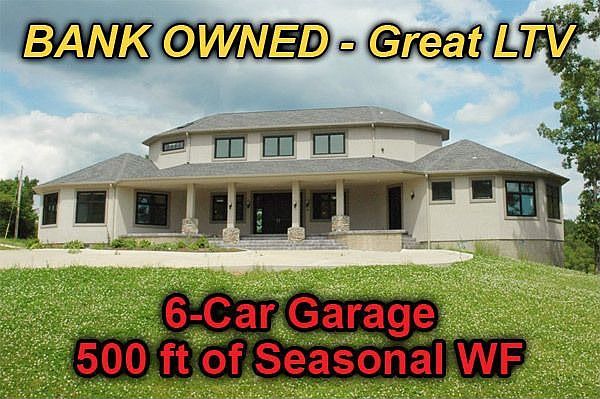 BANK OWNED...Majestic Executive Home/Corporate Retreat w/ a lodge-like feel, sitting on a 30-acre parcel that offers greenspace and abundance of wildlife while providing 500 feet seasonal WF. Gourmet kitchen, Custom wet bar, Custom Wood Cabinetry & IGMA Certified Windows throughout, Main Level Living w/ spacious rooms and open layout. 3 Incredible Master Suites w/ fireplaces. All bedrooms have a "lake view". Video Surveillance System & Theater/Entertainment Room are just a few