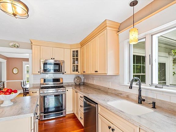 Welcome to a classic Colonial in an established North End neighborhood, close to parks & town! An inviting center entrance awaits, with many fabulous architectural details in the main living spaces, including hardwood flooring, Williamsburg crown molding, arched doorways, built-ins & wainscoting typical of the era plus new windows! The main floor boasts a front to back living room with fireplace, updated kitchen, tastefully appointed powder room & a bonus area now being enjoyed as a den, but equally valuable as a first floor primary ensuite, with attached full bath and laundry. The kitchen with updated cabinets and counters, offers a breakfast nook for casual dining or opt to dine in the full dining room conveniently located adjacent to the kitchen. A special part of the day most certainly includes coffee or tea in the bright daylight of the enclosed sunroom or relaxing in the evening with a favorite book. Travel up the graceful front staircase to the 2nd floor to find another full bathroom, a front to back primary bedroom, 2 additional bedrooms & office. The primary bedroom will easily fit all of your treasured bedroom furniture pieces! The basement, with easy care epoxy flooring, for use as a flexible as a play/family room, office, or gym. Don’t miss the storage locations throughout this home, including a cedar closet for off season clothing. A 2 car detached garage, deck, garden & fenced in yard, complete this quaint city lot. Showings begin at OH 8/16 4-6, 8/17 10-12.
