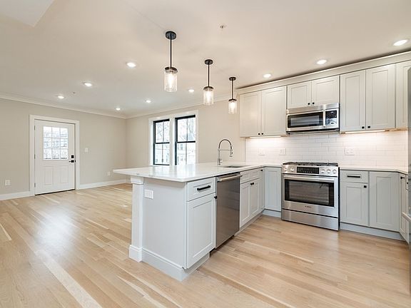 Introducing 76 Turner Street, a collection of three beautiful new construction 3 bedroom/2 bath condominium residences featuring designer finishes, quality craftsmanship and parking, all on a quaint side street outside of Oak Square in Brighton. Enter into a wide open living + dining area with access to a front deck. The adjacent kitchen boasts professional style appliances, gray shaker cabinets, gas cooking, quartz counters and a seating peninsula. Each of the three bedrooms are of a nice size and have custom closets. The primary bedroom features a Juliet balcony and an en-suite bath with black + white contrasting tile, a frameless glass shower + stylish Kohler fixtures. The second bath has a soaking tub, large format tiles + high end fixtures by Grohe. In unit laundry, central air, white oak floors, crown moldings, basement storage and superior fire protection with a sprinkler system + fire alarm round it out. Hurry, this won't last!