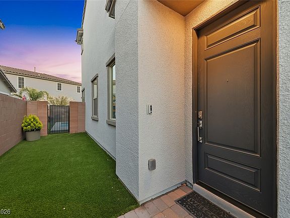 Nestled in the gated community of Alta Fiore at Lake Las Vegas, this home blends luxury and efficiency.Step into your backyard oasis featuring a heated pool and spa, low-maintenance desert landscaping, and direct access to nearby hiking and biking trails—ideal for year-round enjoyment.Energy efficiency shines with a Tesla solar system, tankless water heater, and EV charging outlet in the garage. Enjoy a premium water softener, Vivint security system, and remote-controlled light-filtering shades.The chef’s kitchen offers double ovens, a touch-activated faucet, and walk-in pantry, while the open living area is perfect for entertaining w/ wet bar and surround sound. The primary suite is a serene retreat with a soaking tub and walk-in closet, plus a dedicated laundry room w/ washer and dryer included.Residents enjoy seasonal events at Lake Las Vegas Village and transferable memberships to the Lake Las Vegas Sports Club and Reflection Bay Golf Course, with the $25,000 initiation fee waived.