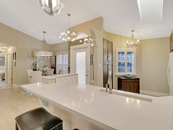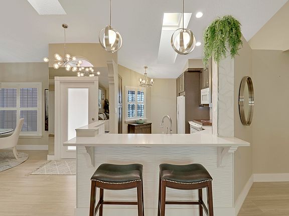 This gorgeous home has been impeccably remodeled with no expense spared. It offers a spacious living area with vaulted ceilings and a desirable split floor plan. The home shows like a model and looks and feels like new construction. Updated kitchen with new cabinets, quartz countertops, and a gas range. Primary bedroom closet has custom built in closet organization and boasts plantation shutters throughout. This home also has impact windows and doors for energy efficiency and peace of mind. The Villa D' Este community pool is beautifully landscaped with a hot tub and lounging area. Very walkable community and very close to the newly remodeled PGA Resort, Golf club, and Cognizant Classic. Schedule your private showing today!