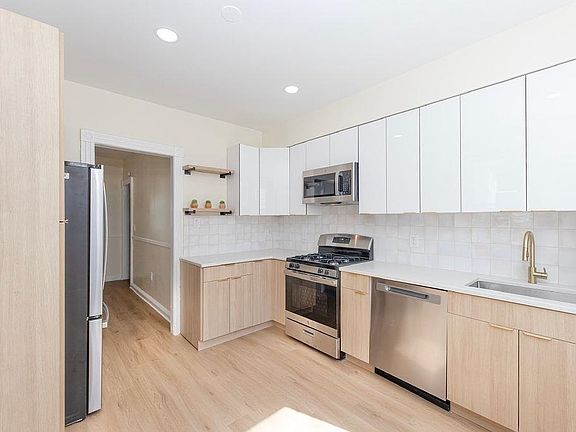 The feel of a country cottage in Bayonne NJ. Step up to your private home with cozy front porch perfect for relaxing and sipping lemonade. Enter inside and step into stylish living. Recently updated with brand new kitchen with new stainless appliances, quartz countertop and new flooring throughout. The kitchen is perfectly laid out with access to the backyard for patio entertaining! 3 bedrooms and and one full bath on the upper level. Enjoy your private backyard and driveway! Full basement with washer and dryer and tons of space for storage.