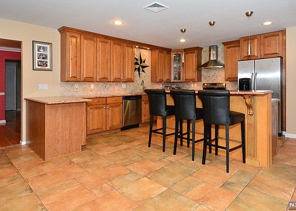 Move in condition, renovated & expanded home, with stunning new kitchen & huge backyard, in desirable town of Maywood! 3 BRs, 2 Full Bathrms, Central AC, New Siding, Deck & Pavers, refinished hardwood flrs, attractive moldings, & a gorgeous kitchen with 2 level island & breakfast bar, granite counters, Chefs Range Hood, Beverage refrigerator, & newer appliances! And the kitchen opens up to your choice of dining area or back family room with fire place! And this whole open layout looks out through the large picture window over the fabulous back yard! Must see to appreciate! Once outside you have an oversized Trex Style Deck & 183 deep property with beautiful professional landscaping, and sprinklers. Upstairs you have the Master Floor with good size MBR with attractive hardwood flrs, beautiful master bathroom, & landing area for office or sitting area! All this & a large dry basement ready for you to finish to your designs. Walk to Schools, Town center, Parks, & NYC Bus! Must See!