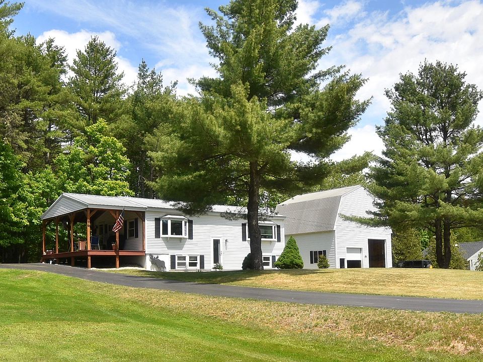 BOM- Financing issues. Conveniently located near I95! Well-maintained, lovely, sunny raised ranch. Open and flowing floor plan from Kitchen-Dining to Living room. Oak hardwood floors. Lower level features two very large rooms (used as bedrooms, larger room 24x14) and a utility/laundry room leading to enclosed bulkhead. Quickstart boiler. Large covered side deck/porch for entertaining and relaxing right off the kitchen. Back yard is a woodsy oasis. New chimney installed (never used) with pipe ready for you to install wood stove in the larger lower room. Updated 3-bedroom septic design is registered. Did you say ''GARAGE ENVY?'' Massive three-story detached insulated gambrel garage (workman's paradise) with abundant electrical outlets and oversized industrial doors. Designed for possible lift. Tons of storage--Room for all your toys. Potential in the top level to create a studio apartment. Water access from house is capped behind the garage but is there for you to install a sink and/or commode. Zoning allows for potential home business, office, etc. Must see!