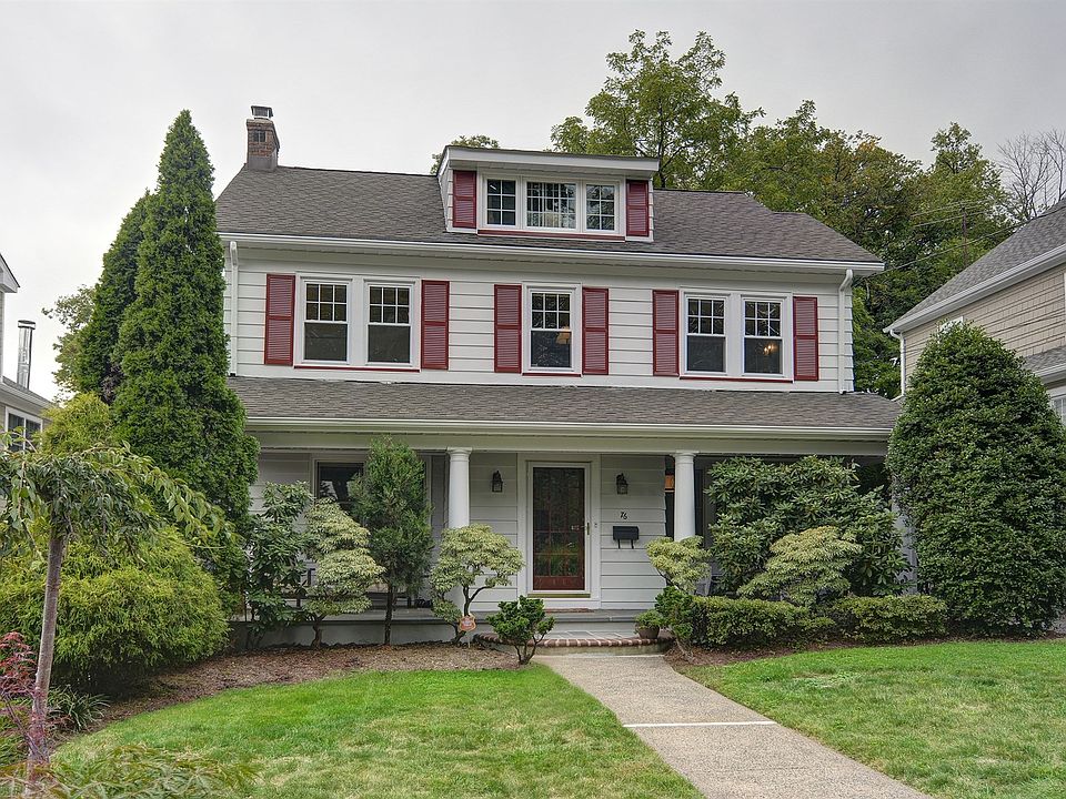 Grand Center Hall Colonial - greeted by the open front porch - the perfect place to sit and sip or read a good book - large living room - with cozy fireplace and beautiful built-in cabinetry surrounding - eat in kitchen is large and light filled w abundant counter space for prepping and preparing meals - beautifully updated w navy cabinetry , granite counters and subway tile backsplash - 3 large second floor bedrooms and updated hall bath - third floor hosts a large bedroom family room or home office - fantastic flexible space to suit your needs - basement is finished and provides great space for working out - relaxing w a movie - grounds are lush and landscaped to perfection - rear privacy - CAC - walk to NYC Train - or jitney on corner WELCOME HOME!