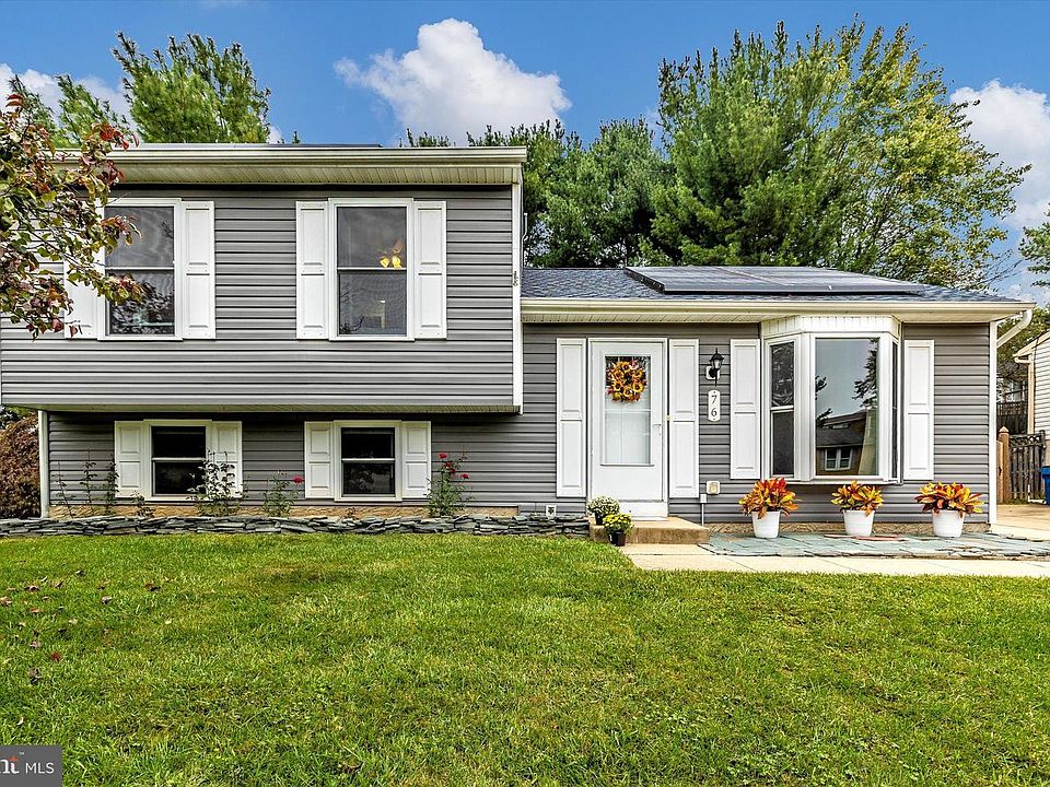 This EXQUISITELY designed home has been designed to keep your bills and maintenance to a minimum! EVERYTHING in this home screams brand new! Open floor plan and totally remodeled for the new buyer. This home has a chef's kitchen with a center island, lots of oak cabinets, granite counters, ceramic backsplash, stainless steel appliances, and french doors to the deck. Open dining room to living area with cathedral ceilings and recessed lighting. Beautiful hardwood throughout the first level. Beautifully updated baths with ceramic tiling. Lower level with sep. laundry and huge family room and half bath. Save money with Tesla solar panels (leased). Solar panels are covered under a PPA. No rent- you only pay Tesla for what power is generated! Tesla makes all repairs. This home must be viewed as it is totally move right in! (shed is as is) HOME WARRANTY!