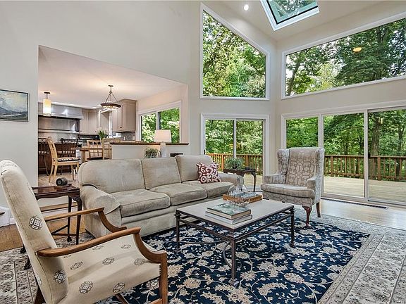 Welcome to this exquisitely updated and meticulously maintained home in one of the most desired neighborhoods in Chappaqua!Experience breathtaking panoramic views through multiple exposures, soaring ceiling heights and open concept living with a layout akin to a colonial with formal dining and living spaces that provide a perfect flow for entertaining year round. All bathrooms have been beautifully updated along with a chef's kitchen boasting high end appliances and granite counter tops. The kitchen flows effortlessly into a sun drenched great room with two way fireplace and multiple doors leading to a dramatic double deck that was just refinished.The second level offers all four bedrooms, including the master suite equipped with a fully updated master bath with steam shower, abundant closet space, updated hall bath and three family bedrooms. The lower level is perfect for family time or to host a guest; with its office, full bath, cedar closet and access to another oversized deck.