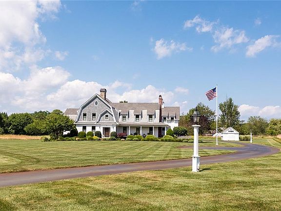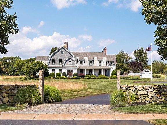Introducing an estate parcel unlike any other in RI! This coastal retreat offers panoramic views in every direction and provides a sanctuary for those seeking tranquility & natural beauty. Privacy abounds on 3 pastoral acres & adjoining conservation land in much sought-after Fletcher Meadows. Custom built and like new; no detail has been overlooked in elevating this 11-years-young property to the highest level. Impeccably-appointed with exquisite choices of lighting, fixtures & finishes this farmhouse colonial offers superior design & master craftsmanship. The expansive kitchen features custom cabinetry, chef's kitchen & breakfast nook. Throughout the home oversized windows unite the indoor & outdoor spaces offering views of the lawn, gardens and meadows while inviting in abundant natural light. The primary en suite is the epitome of serenity, offering privacy, a spa-like bath, walk-in closet and views of the natural setting. With 5 bedrooms, 3 full & 2 half bathrooms, there is more than enough room for family and guests. On the lower level, generous & refined finished space includes a gym, bar & recreation area perfect for movie nights. Outdoor entertaining spaces abound, from the inviting front porch to the bluestone patio with fieldstone fireplace to view sunset skies. Neighborhood access to the bike path along Allen's Harbor. Minutes away from Wickford & East Greenwich waterfront, shops & restaurants. Casual luxury beyond the imagination!