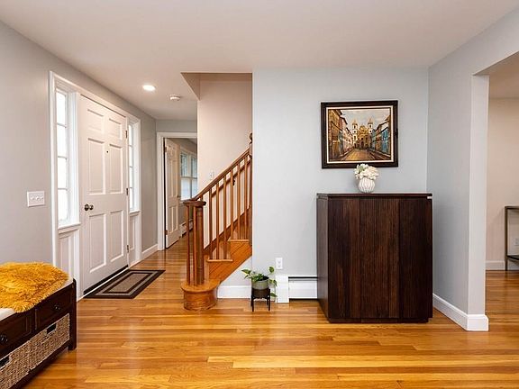 Move right into this expansive Cape set on a ¾ acre lot w/ mature King Pine trees that abuts the Thelin Bird Sanctuary & conservation land. Front & back dormers offer add'l light & living space similar to a colonial. Main level features recessed lighting & HW floors.The bright & spacious kitchen w/ timeless NEW white cabinetry, granite countertops & subway tile backsplash opens to the dining room. Off the dining room is a fireplaced living room w/ picture window. An enclosed three season porch overlooks the yard & is a great place to relax or use as add'l dining space. Two good-size bedrooms & a full bath complete the first floor. Upstairs you will find two large bedrooms w/ recessed lighting, built-ins & plenty of closet space & a NEW contemporary-style bath w/ granite-top vanity, glass-enclosed shower w/ rain shower head. LL features high ceilings & NEW high gloss epoxy flooring & houses a NEWLY finished family room perfect for extended family. Great location w/ easy access to 93