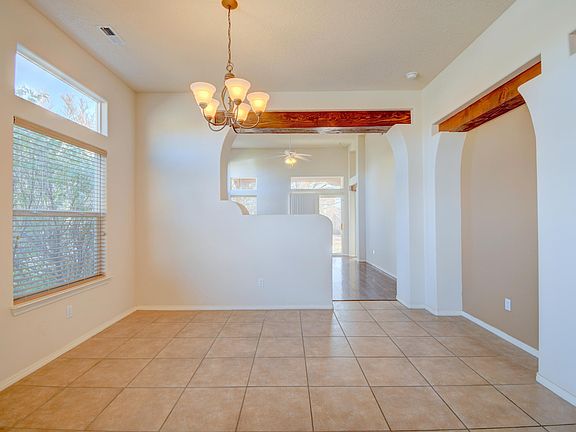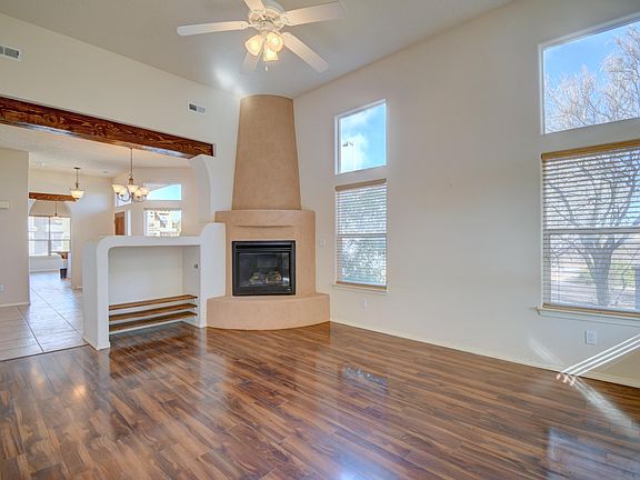 Discover this beautifully maintained southwestern-style residence in the sought-after Willow Trace subdivision. This home features high ceilings that enhance the sense of space, complemented by attractive wood beam accents. The warm ambiance is further enriched by a unique keva-style fireplace, ideal for gathering with family and friends. Enjoy relaxing moments on the covered porch while taking in the community's charm. With the Rio Rancho Sports Complex and Ask Academy nearby, this property seamlessly combines convenience with comfort in a welcoming neighborhood.