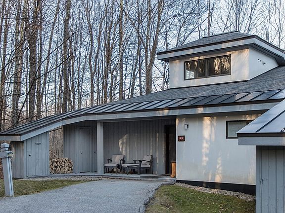 LIVE RESORT STYLE-The WOODS AT KILLINGTON, the only complex in Killington that offers an on-site luxury full-service SPA, health club, indoor pool, exercise room, and tennis courts. Move right in this lovely fully furnished renovated end-unit featuring 1900 square ft. Impressive front entry with a vaulted ceiling, handsome stair-railing, and huge windows is a welcoming entrance. The great room features high ceilings, a wood-burning fireplace, an entertainment bar, gleaming hardwood floors, tons of natural light, and the sounds of the nearby stream. The updated spacious kitchen and dining room hosts beautiful granite counters, a breakfast bar, and stainless appliances, and a walk-in pantry. Hard to find, THREE bedrooms, THREE, and a half baths, this unit has it all! The second-floor master ensuite features a vaulted ceiling and updated luxury bath, walk-in shower, and jetted tub is perfect for the end of a day on the slopes. Another ensuite on the first floor and a large bunk bedroom will surely fit all your ski buddies. All baths are updated too. Enjoy the convenience of a first-floor laundry room and half bath. WE ALL LOVE KILLINGTON, COME AND JOIN THIS WONDERFUL LIFESTYLE. IMMEDIATE OCCUPANCY! Enjoy the interior video provided for your viewing.