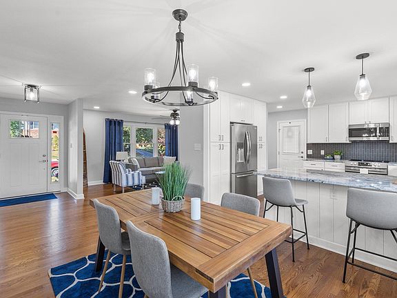 Glendover beauty! - a completely renovated brick ranch that has the feel of a NEW home. No carpet on this one, beautiful oak hardwood flooring, and designer tile in the bathrooms. The kitchen has custom cabinets, premium granite countertops, a subway tile backsplash, and new stainless appliances. Pendant lighting and canned lights assist with natural light from the new windows. Additionally, there is a breakfast bar, eat-in dining area and adjacent kitchen patio for entertaining friends and family. Three well sized bedrooms, and two full baths that are magazine worthy. The primary suite has new vanity, dual sinks, and an oversized, tile shower with frameless glass enclosure. Do you want to cheer on your favorite team? Come check out the finished basement with wet bar and beverage cooler - there's enough room for a pool table or play area too. If it seems to good to be true, there's also a large yard with fire pit, fenced in area for your sweet dogs, and a large 2 car garage with specialty floor coating. Don't miss an opportunity to view!