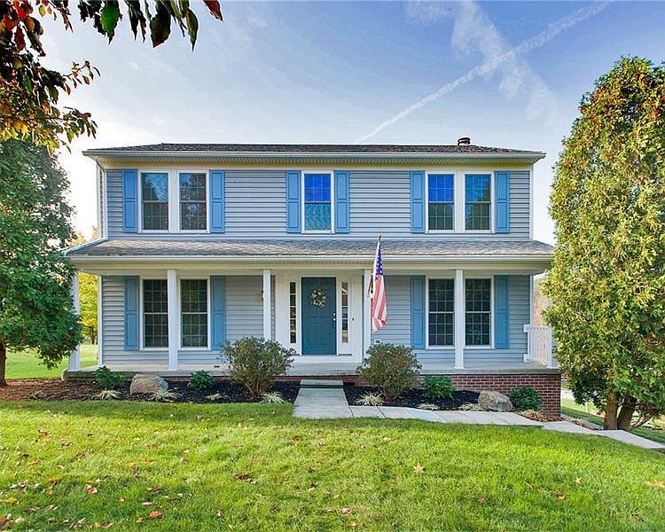 This 4 bedroom center hall colonial in the Altman Farms neighborhood is a great home. The nicely landscaped grounds invite guests to enter from the welcoming covered front porch. The main level features neutral decor throughout and beautiful oak hardwood flooring with cherry hardwood trim in the living room, dining room, and family room. The spacious eat in kitchen features ceramic tile flooring, stainless steel appliances, a large pantry, a center island and glass doors leading to the rear deck. The second level boasts a large master bedroom with 8 x 6 walk in closet and a full bath with a double sink vanity. Three nicely sized guest bedrooms are bright and share a hallway full bath. Enjoy the outdoors on the deck with steps to level backyard and the driveway. The omni stone driveway offers additional parking to the 2 car garage that includes a newer garage door. Other updates include: roof, windows, siding - 5 years old, furnace and central air - 2 years old.This home is an excellent value in a convenient location!