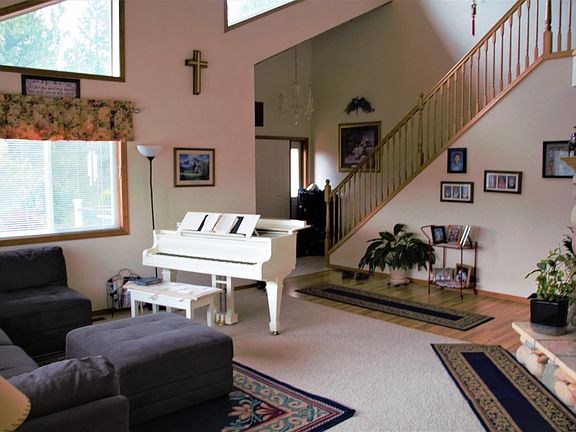 SPECTACULAR country home minutes to Colville; 6 bdrms, 4 bath, 4100 sq ft of finished living space on 5.9 park-like acres. One of the best values in the Colville area; soaring living room ceilings, central vac, elegant oak stairway, full country kitchen w/ oak cabinets, island & pantry. Heating options include natural gas central heating and AC, river rock fireplace w/gas log insert, and wood stove in basement; formal dining room has access to deck & fabulous views of the Colville Valley. 700 sq ft Master w/sitting area, private balcony and ensuite w/jetted tub & double vanity. Full finished daylight bsmt with family room, game room, and full kitchen makes for great options. 2-car garage plus separate shop must see to appreciate.