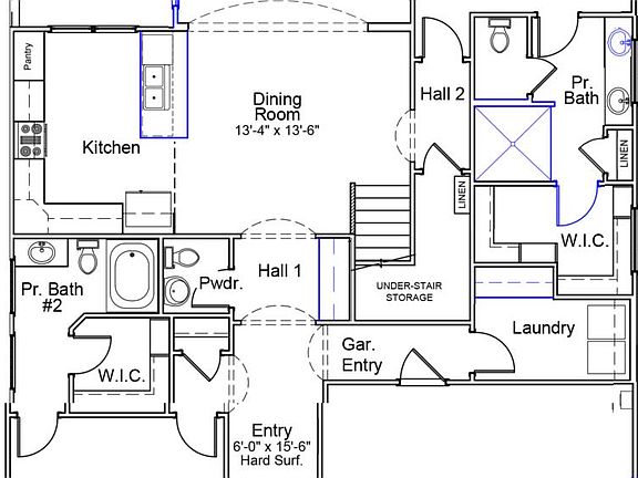 A rare beauty with DUAL primary bedrooms on the main floor, arched openings throughout the first-floor common areas. A true chef's kitchen with gourmet appliances and a vented designer wall mount hood. Upgraded white cabinets with soft close and dovetail cabinets throughout the home. Beautiful "Miami Vena" quartz countertops in the kitchen and butler's pantry. "Marina" luxury vinyl plank flooring throughout main common areas. The main primary suite is off to the back of the house separated from the rest of the home through a private hallway. The primary bathroom has a HUGE 60x60 tiled walk-in shower, dual sinks, a separate water closet, and a large walk-in closet. The second primary bedroom located at the front of the home has a great size walk-in closet and 5-foot walk-in shower. Hardwood stairs with wood spindles lead you to the second floor. Two bedrooms, a full bath, and loft with an additional floored storage area complete the second floor.