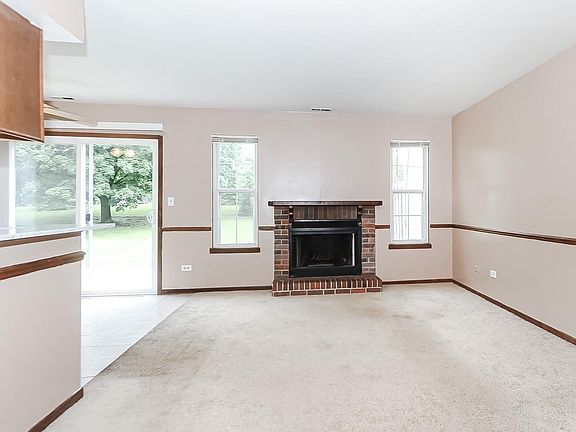 Highly popular Bristol model in Nantucket Village of Island Lake. 3BR, 1.5 BA, and 1 CAR home townhome with nice-sized yard and nice view of common grounds. So much is new here! New paint, new stainless steel kitchen appliances, newly updated kitchen counters, and new bathroom flooring. Seller has already paid for NEW CARPETING THROUGHOUT and is just waiting for the contractor to install it. Open floorplan features a main level den/family room/dining room with glass-panel French doors that would be perfect fit for a home office. Natural light fills the living room via the two large windows on either side of the wood-burning fireplace. The updated eat-in kitchen features brand-new stainless steel appliances, refinished counter tops, newer fixtures, and lots of storage. All three bedrooms are located on the 2nd floor, peacefully away from all of the main living areas. Two guest parking lots close to the home. Low HOA dues too! Close to the Fox River, restaurants, lakes, parks, and main thoroughfares. You'll love living here!