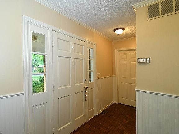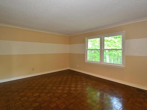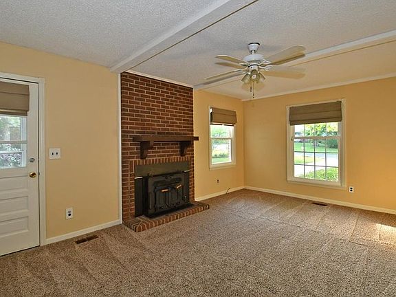 Move-in READY - 3 BR 2BA brick ranch. Pretty updated, eat-in kitchen with solid surface counters, tile backsplash and plant window, formal dining room with parquet floor, cozy den with fireplace & ceiling fan, plus formal living room - all great for entertaining. Spacious master bedroom with master bath. Fresh paint! Updated Bathrooms. Vinyl windows and NEW roof. Heat pump -5 years old. Deck. 400 sq ft storage shed. .90 acres lot with access to pond behind house. Great backyard for entertaining.