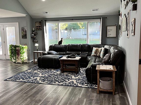 Like new home with many decorative accents. Open floor plan with spacious great room, complete with cathedral ceiling, dining and living area have 9" ceilings. Large breakfast bar, dining and kitchen area. All kitchen appliances are included in the listing, as well as the washer and the dryer. Plenty of cabinetry and a walk in pantry. Garden tub/shower in the owner's suite. Sliding barn doors accentuate the owner's suite, pantry . Partially fenced in back yard, concrete patio and wood deck, wooden deck adds outside entertaining for the hot tub and covered gazebo. The utility shed is drywalled, electric installed and is ready for flooring. (Seller will leave flooring for this area). Wooden shelves on the two guest room bedrooms, the security cameras and the dog gate are not included in the sale. Pre-approval letter or proof of funds must be included with all offers.