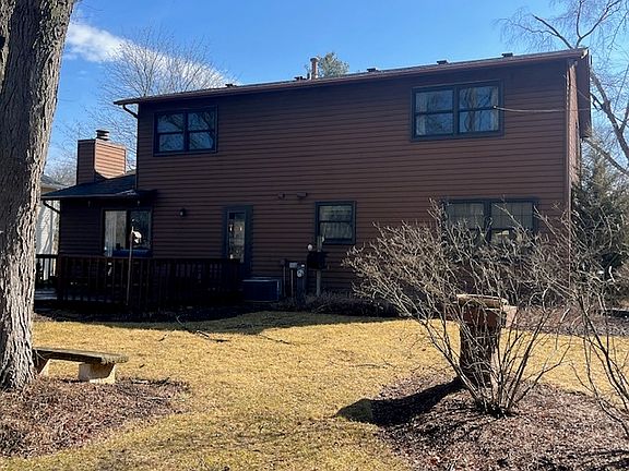 Huntington Hills subdivision on a quiet cul-de-sac street. Only a mile from Fox River and a bustling downtown with restaurants and bars for your nights out. Perfect home and lot for your family to enjoy! This home has room for your expanding family with four bedrooms and 2.5 baths. The master bedroom has its own private full bath. The second bedroom has a useful walk in closet. All of the bedrooms are a nice size to accommodate large furniture. Second full bath is also on this floor. The main level boast a large living room, dinning room and family room with a wood burning fireplace. The family room has a walk out patio door to enjoy beautiful summer nights! The large deck overlooks a nicely landscapped private backyard. Main level also has a fully equipped kitchen with stainless steel appliances. Half bath and laundry room are also located on this main floor. Enjoy entertaining with a family room in the basement which also has a wet bar. Mechanicals are all recent: Furnace and Central Air 2022, hot water heater 2014, roof is approximately 12 years old.
