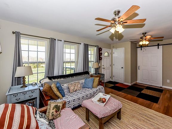 Recently renovated, this delightful modern farmhouse instantly feels like home. Easy exterior maintenance with vinyl siding and steel roof mean one less thing to get in the way of enjoying life within this scenic valley. Inside this country cottage charmer every room is meticulously painted with a soothing palette of colors. Barn doors in the master bedroom add to the farmhouse vibe. Like a page out of a country home magazine the new master bath is a sweet retreat. The 1947 tobacco barn still stands as the winds come off the picturesque pasture once part of a robust dairy farm. To the north edge, undisturbed wooded acreage is tucked closely against a spring fed pond and surrounding streams. A haven for blue heron, crane, wood duck and deer. Fruit and pecan trees are almost old enough to
