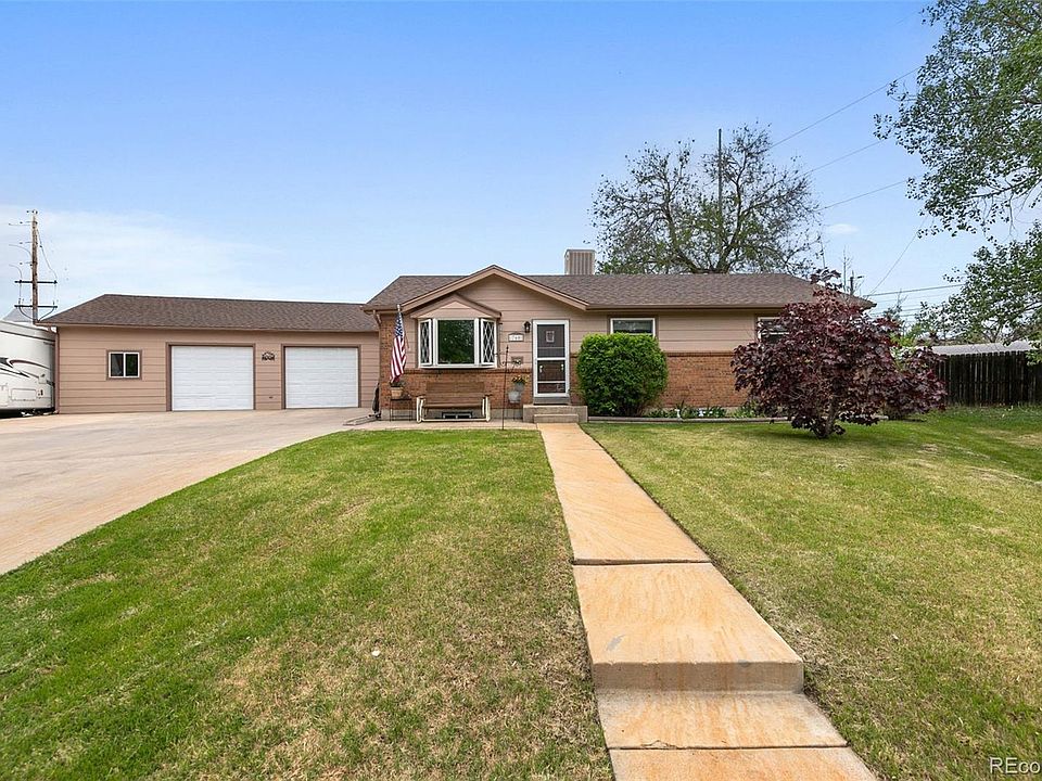 Check out this amazing brick ranch home with massive lot! Welcome in to the main floor of this adorable home that hosts a sunny living room, lovely kitchen with eat-in dining area and all kitchen appliances stay, primary bedroom and 2 additional bedrooms and a updated full bath all on the main level. The basement is nearly all finished with a large family room, huge laundry room with counter and cabinet space, updated 3/4 bath and 2 non-conforming bedrooms. The outside of this home is wonderful with tons of space for all your toys! No HOA here, 864 SF 3 car garage, 2 sheds, huge concrete drive way, extra parking to the east of the garage, massive garden area and big fenced back yard. Brand new roof too & RV Parking space!