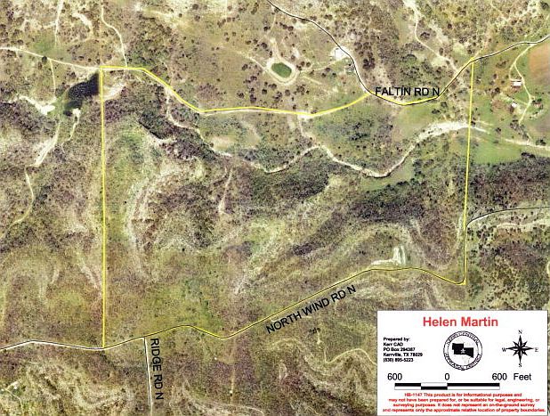 229.51 acres more or less (per new survey) located approximately 3 miles west of Cypress Creek Road and 8 miles northwest of Comfort, Tx. Property is irregular in shape and is accessed by a dedicated 60' wide easement which extends westward from Lazy Valley Road. This easement encumbers the northern portion of the tract and provides access to multiple property owners to the west. Interior access on the ranch is considered fair, being via typical ranch roads. The northern portion of the tract can not be accessed from the southern portion due to steep terrian and bluffs. New road would have to be constructed for four wheel drive vehicles. Stock fencing on three sides. Commercial electrical line easement crosses the Northeast corner of property. Seasonal creek on property.
