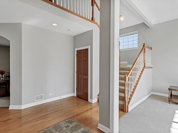 Incredible opportunity to own this beautiful home with a walk-out basement on a unique half acre lot. Backing to nature in a quiet, gorgeous neighborhood! Owners have meticulously maintained this stunning home to showcase its bright eat-in kitchen with hardwood floors, 42" cabinets, granite, all stainless steel kitchen appliances and walk in pantry. Open concept floorplan leads to an inviting family room complete with cozy brick gas fireplace and high ceilings for loads of natural light. Huge Owner's suite features 2 walk in closets, private bath with dual sinks, jetted tub and separate shower. Generously sized secondary bedrooms with large windows and huge closets. Full walk out basement with heated flooring unfinished waiting for you to add to your personal touches! Main level laundry room with utility sink and tons of extra storage provides convenient access to fully finished 3 car garage. Enjoy stunning sunsets from the upper deck or relax in the shade on the lower patio. Area offers scenic biking and walking trails, parks, and all the convenience of nearby shopping, restaurants, expressway, etc. There is nothing to do but move in to this clean and well cared for home and begin enjoying all it has to offer!
