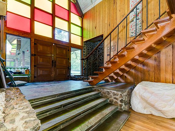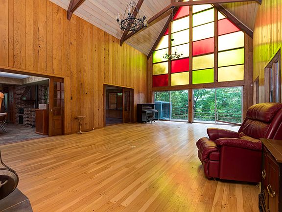 Stunning Midcentury time capsule! One of a kind hunting lodge built with the most exquisite design and materials, virtually untouched since it's 1960 completion. Situated on 200 acres, this private gated residence is the perfect place to get away from the rest of the world. You will be in awe the moment you walk in and see the slate entry, massive floor to ceiling fireplace, soaring ceilings, exquisite stained glass, and original wood floors. 2 detached garages, a pond, and beautiful views. All measurements and square footage approximate.