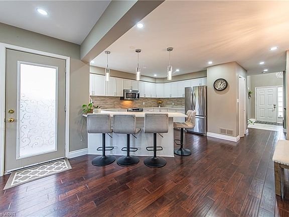 Welcome to this impeccably maintained 3-bedroom, 3-bathroom residence nestled in the highly sought-after East Bridge neighborhood of Waterloo. This home exudes a timeless charm and sophistication, featuring a fully finished interior that leaves nothing to be desired.The open-concept main floor is ideal for hosting and entertaining, offering a kitchen that's nothing short of perfection. Adorned with stainless steel appliances, a sleek quartz countertop, a stylish backsplash, and gleaming hardwood floors, it's a picture-perfect space for culinary creations. The convenience of a main floor bathroom and easy backyard access add to the appeal.The master suite is a true sanctuary, boasting a spacious walk-in closet complete with organizers and a contemporary bathroom adorned with a glass-enclosed shower, quartz countertop, and sleek tile finishes. Two additional generously sized bedrooms and a tastefully appointed bathroom continue the elegance on the upper level.The lower level of the home is a versatile space that can serve as a gym, an office, or an ideal area for children to play and explore their imagination. This property is an absolute must-see in a welcoming and family-friendly neighborhood.Recent Upgrades: Furnace 2020, Air Conditioner 2020, Dryer 2022, 2021 Pot Lights 2023-10-17