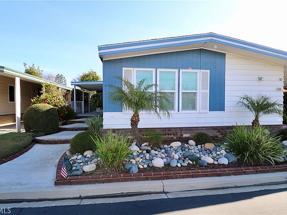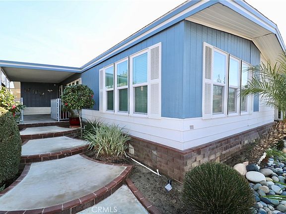 Senior Park Community 55+...This home Is turnkey ready. 3 bd., 2 Bath spacious home is waiting for you. Carpeting thru- out home except for Kitchen, bathrooms and private entry way, New dual paned windows, earthquake bracing under home, remodeled master bathroom with dressing area. Kitchen sink is copper, electric stove and beautiful large refrigerator. Fencing around private back patio with patio cover for your enjoyment. This is a hidden gem tucked away in our beautiful park like setting. Bus stop out in front of park. Plenty of shopping and dining nearby. Call or stop by. See you soon….