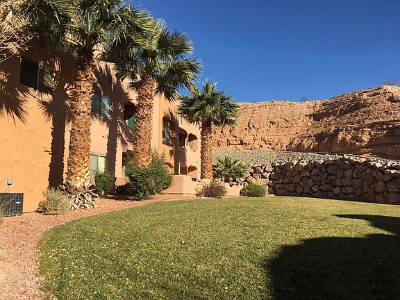 This spacious condo is located in Enchantment, a thriving community north of I-15 and enveloped by the Arnold Palmer designed Oasis Golf Course. The condo is tucked away at the far end of the community adjacent to a beautifully landscaped cul-de-sac and lush green common area. The location is awesome and the southern orientation is ideal. The large back patio has a gorgeous view of the golf course, lake and mountains. A private side patio provides an additional area to enjoy the outdoors. The room sizes are generous and the numerous windows provide ample natural light. The single car garage is just steps away. Home ownership allows access to the Mesquite Vistas pool, spa and fitness facility.