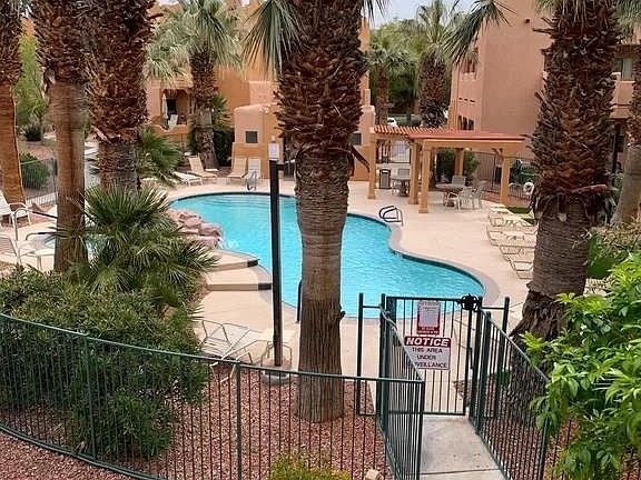 Perfectly located condo in "Enchantment" the place to live in Mesquite, Nv. This great condo is nestled in the foothills of the Oasis Golf course w/lots of upgrades. Get up early to enjoy an amazing sunrise from your balcony w/breathtaking views of mtns, wildlife, golf course lakes, overlooking the 8th fairway. Property features fresh paint, lg 2 garage, 2 spacious bedrooms, walk-in closets and 2 gorgeous bathrooms, coffered 9' ceilings w/high end ceiling fans, solar tubes master bath/closet and 2 lg balconies accessible from every living space. Kitchen has new black smudge proof stainless-steel appliances, granite counter tops & fabulous views. Property is unique, enjoy the tranquil feel w/panoramic views from the main living space, kitchen & master bedroom. This is an end unit, very private & a short walk to enjoy all amenities community has to offer: On site RV & boat parking, pool/hot tub, dining, golf, tennis courts, club house, exercise facility, close to shopping and schools.