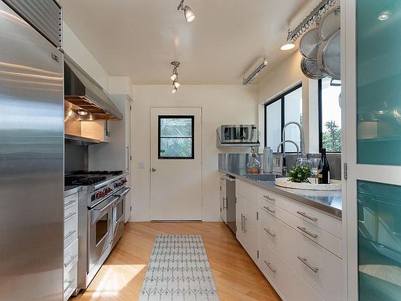 This beautiful contemporary home with pool, spa and stunning architectural lines is the perfect escape in a premium Montecito location. The interior of the home has dramatic, high ceilings with large windows that allow for an abundance of natural light. Modern and open, the living room enjoys mountain views, a fireplace, and a copious amount of windows, providing the feeling of being immersed in the property's tranquility. The kitchen is the perfect combination of luxury and functionality, with two Wolf-Range ovens, a Sub-Zero refrigerator, Sub-Zero wine refrigerator and pristine stainless steel countertops. Upstairs the master bedroom provides a peaceful space with a private balcony and ocean views. This Montecito home is it's very own peaceful paradise. Located in MUS