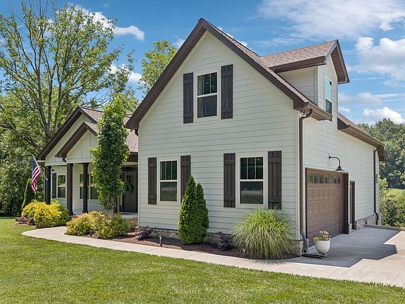 Escape to peaceful living and Gatlinburg-like views in this nearly new 3 bedroom, 2 bath modern farmhouse set on just over 6 private acres. Built in 2021, this beautifully designed home features an open-concept layout, a spacious living area filled with natural light, and a chef’s kitchen complete with quartz countertops, stainless steel appliances, and a large center island. The primary suite offers a spa-inspired bathroom with dual vanities, soaking tub & walk-in shower with designer tile, and generous closet space. Upstairs offers a large bonus room and an additional flex room that is currently used as a 4th bedroom. Enjoy sunrise views from the rocking chair front porch and sunset evenings on the back deck overlooking wide open green space. Additional highlights include a large laundry/mud room, oversized two-car garage and ample room for recreational vehicles or hobby farming. If you're looking for move-in ready country charm with modern finishes and room to roam, this property is a must-see!