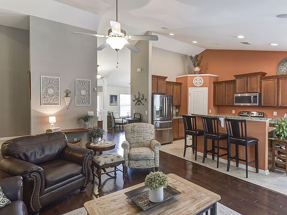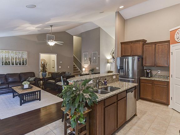 - RoomKitchenFeatures: Granite Counters, Kitchen Island, Pantry, Recessed Lighting, Eat-in Kitchen, Cabinets-Stained, Bar, Floors-Tile
