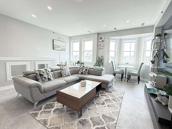 For more info on this property, please click the Brochure button. Welcome to this upgraded "Montana" model stacked townhouse - larger than most at approx. 1,100 sq ft - with a private rooftop terrace offering unobstructed south views. Perfect for hosting under the gazebo, enjoying sunrises & sunsets, or watching fireworks during festivities. Inside, the open-concept layout features 9 ft ceilings, noise-canceling windows, new (2025) hardwood stairs and sleek vinyl flooring. The bright kitchen includes granite counters, high-end appliances, and a functional island flowing into spacious living & dining areas. Upstairs offers 2 bedrooms and 2 full baths, including a large primary suite with private ensuite, plus a 3rd-floor den ideal for work. Ensuite laundry, underground parking, and visitor parking add convenience. Located near Yorkdale Mall, subway, Allen Rd & Hwy 401, this move-in ready home blends comfort, style, and an unbeatable location in the heart of Toronto.