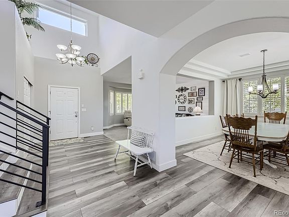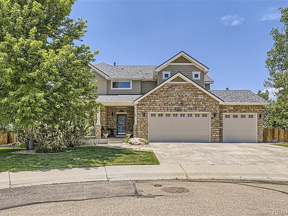 Welcome to your dream home, perfectly situated at the end of a cul-de-sac, offering unobstructed and breathtaking mountain views of the front range. You're immediately greeted by an open floor plan that frames the mountains right from the entrance. The kitchen is a chef's dream, quartz countertops, custom backsplash, meticulously organized soft-close cabinets, an induction cooktop with range hood, two ovens, a convection microwave, built in Dacor side by side fridge and large pantry. The kitchen opens to the breakfast nook area & the family room complete with a two-way gas fireplace with custom stone. From the family room area, head into the office, where you can work from home with one of the best views of the entire front range. Next, grab a coffee from the dedicated coffee bar & step out onto the deck, where you can soak in the panoramic mountain views or watch the sun set. Automatic blinds help keep the sun at bay on hot days. Upstairs you will find the primary suite which occupies half of the top floor, featuring a spacious sitting area, a five-piece bathroom, & a large walk-in closet with its own washer & dryer. Additionally, the top floor boasts a loft, 3 other bedrooms, one of which includes it's own bathroom, all offering stunning mountain vistas. Descend to the basement to find an entertainer's paradise. Watch your favorite movies in the theater, enjoy a drink at the bar or kegerator, an entertainer’s delight, walk out basement steps away to the hot tub & fire pit. The basement also includes 1 more bedroom, office, & a dedicated home gym. The garage with insulated doors, Heat & A/C, is a car enthusiast's dream, featuring a built-in Kranzle car wash system & vacuum, wall slats for maximum storage, space for three cars plus an additional tandem parking spot, currently being used as a work area. This home is a perfect blend of luxury, comfort, & entertainment, designed to offer an exceptional living experience with unparalleled mountain views.