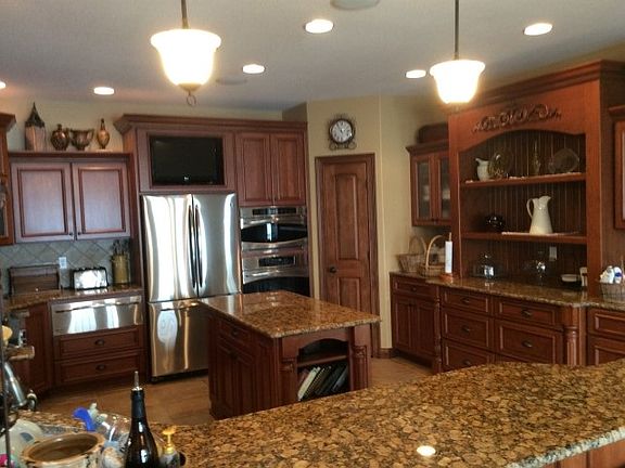 A & D Specs built in 2009, this spacious 3 bedroom 3.5 bath home has every amenity imaginable! The custom kitchen includes granite counter tops, 4' cook top with hood, warming drawer, built-in double ovens, custom Cherry cabinets, and porcelain tile. The master suite is on the lower level and features in floor heating throughout, custom walk-in shower, and walk-in closet. Guest bedrooms also have walk-in closets providing plenty of storage. The home has 2 heating systems, 90% efficient in floor geothermal on the lower level and 95% efficient HVAC forced air on the main and upper levels. Additional features include surround sound in and out, whole house generator, irrigation on the lakefront lot, Trex decking and under deck water proof system for a maintenance free exterior. Large 36x60 additional detached garage for boat storage.