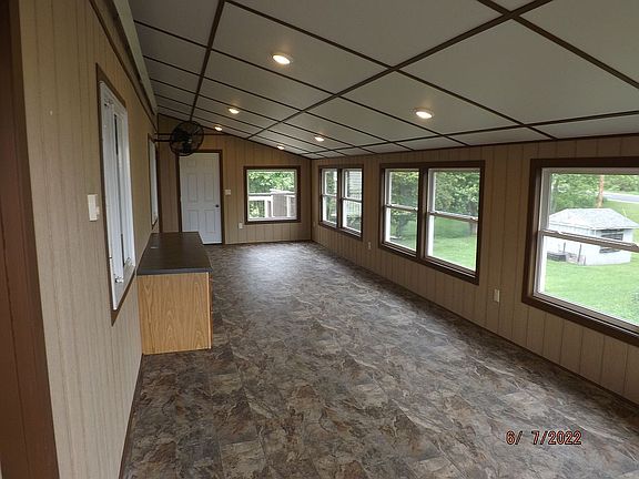 Newly remodeled home with large porch and plenty of counter space in the kitchen.