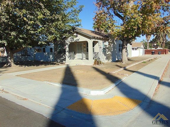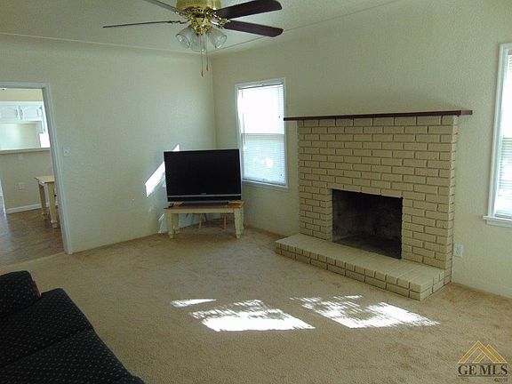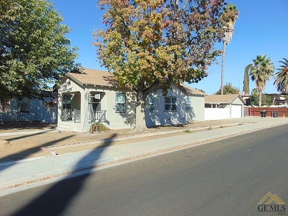 Charming Home on Corner Lot in Wasco! Cute as a button, this home features 3 bedrooms, 1 bath, a kitchen and dining area with new linoleum flooring, new appliances, white cabinets, solid surface countertops, and a spacious living room with cozy brick fireplace. Updated with newer carpet and freshly painted inside and out, this home has built-in cabinets in the hallway, window blinds and ceiling fans throughout, a basement for extra storage, detached two car garage, large covered patio in the backyard for BBQ's, a beautiful citrus tree, and a fantastic front porch entry that is perfect for lounging and enjoying the yard with mature shade trees and peaceful street. Well kept home with convenient corner lot location close to parks and schools.