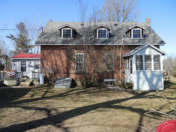 3 Bedroom Brick home on a country corner lot. This house years and years ago used to be a school house. The current owner has made many updates during the last 13 years. House is heated with a Fisher woodstove as well as with an oil furnace. First floor features a large mudroom, eat in kitchen with oak cabinets and a pantry closet, living room with hardwood floors, first floor bedroom (or use it as an office/den/playroom), laundry room, and a half bath. Upstairs there are two very large bedrooms with lots of natural light and a spacious full bath. One of the bedrooms has a separate staircase to the first floor. Off of the laundry room there is a screened in enclosed porch and off the mudroom is an open porch. Also has central air conditioning. Detached 2 car garage and a paved driveway. Lots of perennials and lilacs. Taxes shown are without the STAR program. Kitchen appliances will stay. The property next door is also for sale. It is a 3 bedroom single wide with a two car garage (with 2nd story storage) on a 4.3 acre lot. Seller will sell both properties for $150,000. See MLS # 38308.
