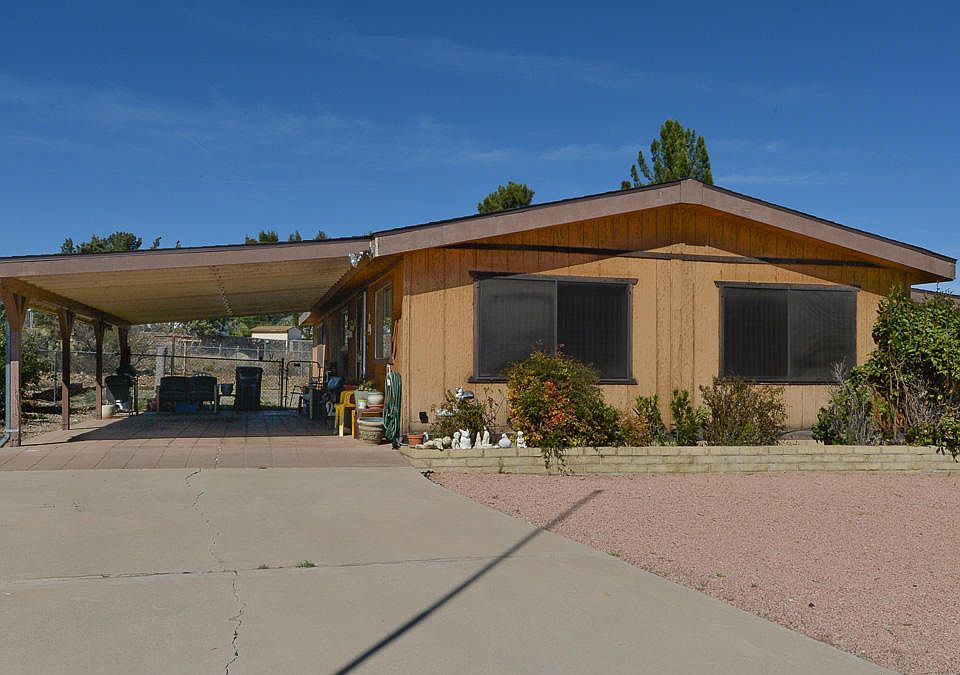 Nice home in well kept area. 2 bedroom with third room used as guest bedroom with no closet. Would make great office with own entry or hobby room? Two car carport. New roof in 2013. wonderful view of Mingus Mt. and Jerome.