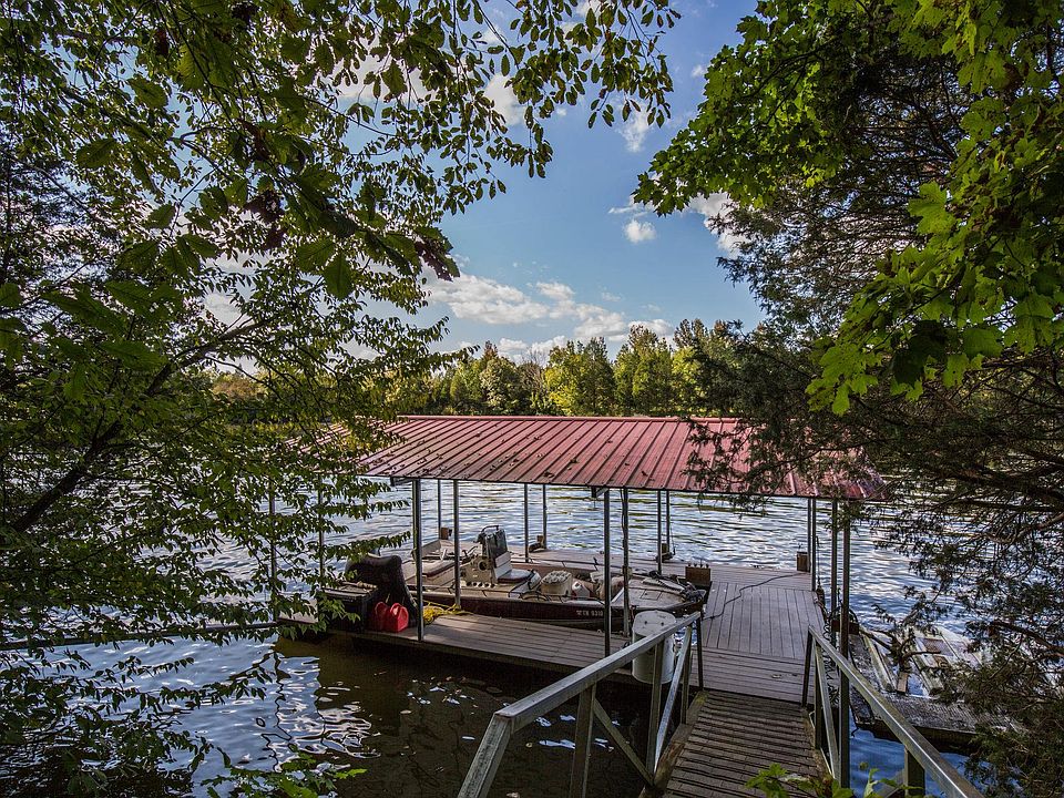Gorgeous Lake Home with Private DOCK that has water and electricity. Make this your weekend getaway or full time serenity living. 44x29 Oversize garage, 3 decks looking out over the lake. Gazebo down by the lake is powered.