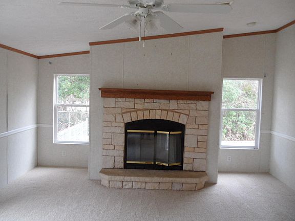 Act Quickly for a Fantastic deal on this great home on almost 2 acres! 2002 Double wide mobile home on a quiet street that boasts 4 Bedrooms and 2 full baths. New Carpet and laminate floors. Nice open floor plan that includes 2100 square feet of living space. A laminate foyer entrance welcomes you into a roomy living room area. Next step into an enormous family/dining room combo featuring a beautiful centerpiece fireplace. You'll love the split Bedroom floor plan that allows the owner plenty of Master BR privacy complete with MB Garden Tub,separate shower walk-in closet. The secondary BR's are adequate sized and share a hall bath. The user friendly Kitchen has generous space Kitchen Island, built-in Microwave, wall oven, dishwasher, electric cook top,walk-in pantry